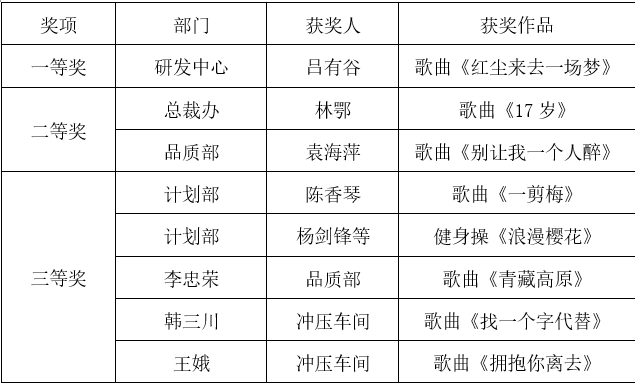 此次才藝競賽活動,大家都充滿熱情的參與,各自展現(xiàn)拿手才藝,再次看到了充滿激情,熱血和凝聚力的風馳人,活動雖已圓滿結束,但是大家的這份價值觀精神將會在工作中繼續(xù)延續(xù)。相信有著這么一群具有創(chuàng)新、敢于表現(xiàn)的風馳人,定能實現(xiàn)公司的使命“引領低速車輪發(fā)展,為中國制造正名”!